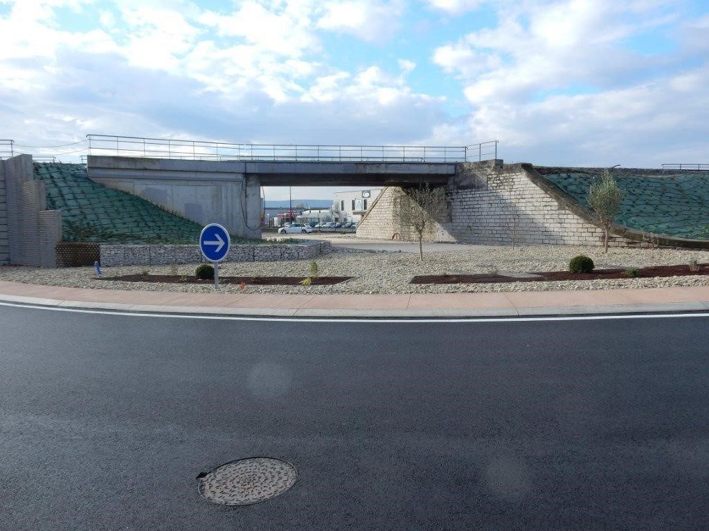 Création d’un carrefour giratoire, dans le cadre de la réhabilitation du pôle d’activités de PERTUIS, sous la voie SNCF (Cavaillon-Cheval Blanc-Pertuis), située au nord de la zone, sur la RD 956. Cet ouvrage a nécessité la création de deux ponts rails, de part et d’autre du pont-rail historique existant.